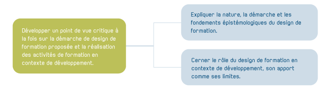 Le design de formation est une approche rationnelle et systématique de la formation, qui vise à en assurer l’efficacité et à augmenter la probabilité que l’enseignement donnera les résultats attendus. Le designer de formation aborde l’enseignement comme un processus de résolution de problèmes d’apprentissage. Cependant, il est ancré dans le paradigme industriel de la société, où les progrès économique et technologique constituent le moteur du développement. Cette appartenance invite à la prudence quand on veut appliquer le design de formation à des situations de développement durable, où l’on ne cherche pas nécessairement ou pas exclusivement à créer une nouvelle génération d’experts.